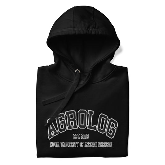 Broderad Agrolog Svart Tryck Premium Hoodie