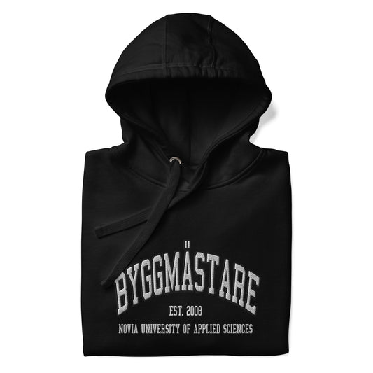 Broderad Byggmästare Svart Tryck Premium Hoodie