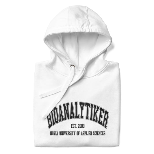 Broderad Bioanalytiker Vitt Tryck Premium Hoodie