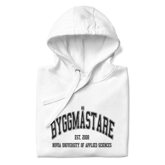 Broderad Byggmästare Vitt Tryck Premium Hoodie