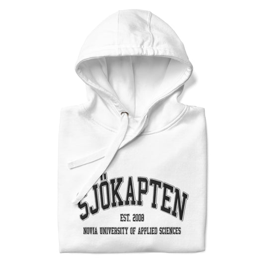 Broderad Sjökapten Vitt Tryck Premium Hoodie